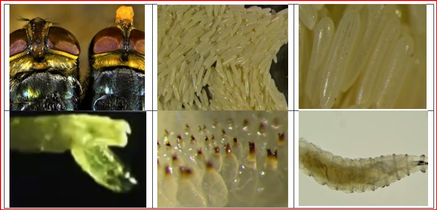Este manuscrito escrito-visual en particular busca resaltar las medidas del pasado para reforzar los protocolos del presente. Espero que al lector le interese consultar la redacción y ver las fotografías didácticas que lo puedan instruir y preparar para la realidad. Para conocer la sinonimia y taxonomía. Ver el desarrollo bucal, canal respiratorio y madurez de la larva. En capítulos siguientes se explican más a detalle la anatomía de la mosca y su importancia aplicable en campo.