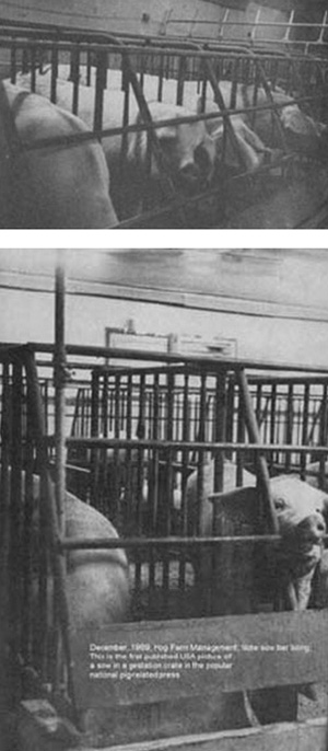 La presión de mover a las cerdas de estas jaulas de gestación individuales a los corrales de gestación, fue promovida por activistas humanitarios y por algunos productores del mercado nicho.
