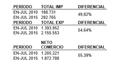En segundo lugar, y como veremos más adelante, es nuestra relación comercial con terceros países, la que ha impactado con mayor fuerza en nuestra internacionalización. La exportación a estas regiones durante los primeros semestres de 2010 y 2015 ha pasado de 193 a 522 millones de euros, sufriendo un incremento en el período de un 169%, mientras que la importación de terceros países ha caído de 2 millones a algo menos de medio millón de euros.