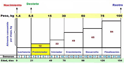 Grafico 1. Diferentes fases del cerdo en crecimiento