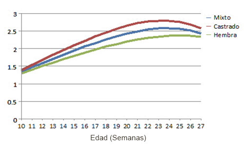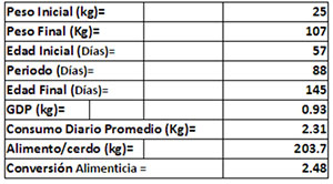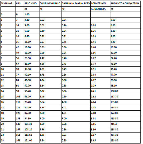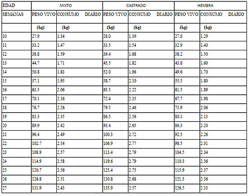 Nota: Este consumo no incluye los desperdicios, es una dieta peletizada con una energía de 3228 kcal/kg.