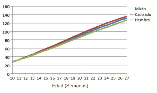 Tabla 3A. Objetivo de consumo semanal para cerdo en crecimiento en condiciones termoneutrales