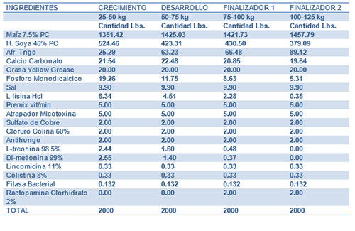 Las etapas de crecimientos y finalización representan entre un 85 a 90% del total de alimento consumido por un cerdo de 0 a 22 semanas de edad y es el periodo más ineficiente en cuanto a conversión alimenticia. Los nutricionistas deben diseñar dietas económicas y eficientes en estas etapas o fases.