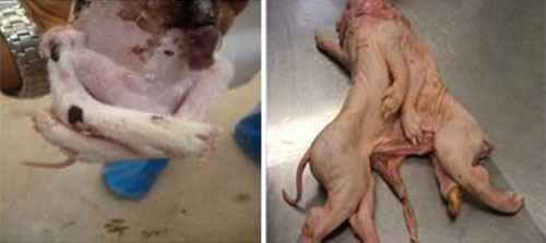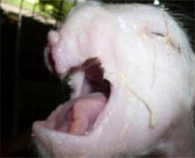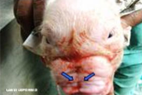 A pesar que realmente en la actividad porcicola una vez más que otra suelen identificarse el nacimiento de lechones con determinados tipos de malformaciones congénitas claramente visibles, en el proyecto a que hacemos alusión la situación fue muy significativa ya que en el término de 4 – 6 semanas se presentaron de manera alarmante la mayoría de las malformaciones que se exponen en las fotos.