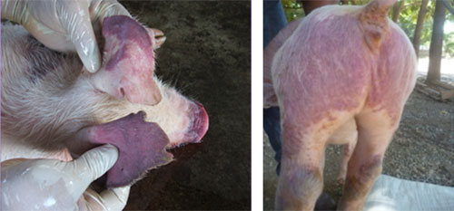 Los signos clínicos más relevantes incluyen: fiebre, pelaje erizado e inapetencia absoluta, cianosis y eritemas cutáneos especialmente en porciones distales del cuerpo, párpados engomados con epiforastos recurrente y disnea con postración en grupos, así como trastornos neurológicos con ataxia, convulsiones y pedaleo en decúbito lateral.