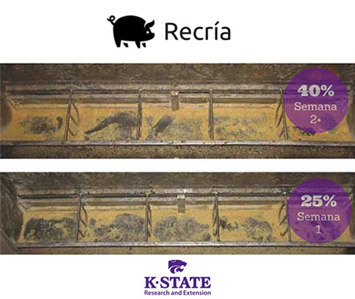 Investigaciones mencionan que, si los comederos se encuentran con menos de un 20% de espacio ocupado por el alimento, los cerdos podrían reducir su consumo, mientras que si el espacio del comedero posee más del 40% ocupado por el alimento, las pérdidas por caída al suelo son inminentes.