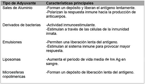 Características generales, tipos y mecanismos de acción de los adyuvantes vacunales