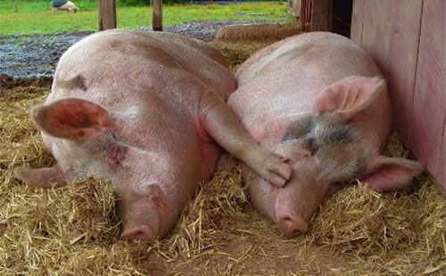 7. Pueden tener un apetito indiscriminado, pero los cerdos son animales muy inteligentes y muy sociales. Cuando se mantienen en un grupo van a acurrucarse cerca uno del otro, y prefieren dormir de nariz a nariz. Los estudios también han demostrado que sueñan, al igual que los humanos.