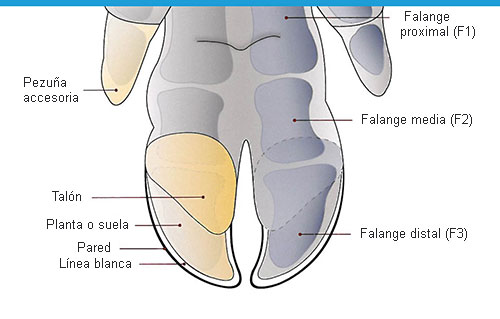 • La línea blanca es visible cuando se produce separación a lo largo de la línea blanca de la pezuña.