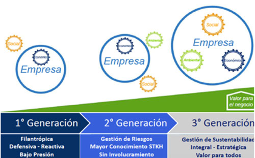 Hoy en día, algunos empresarios han comprendido que no sólo debían hacer escasas y esporádicas acciones en las personas, por lo que están remodelando sus planes de negocio para agregar el factor social como un propósito más de la empresa. En esta tercera generación de empresas, también se ha agregado el factor ambiental.