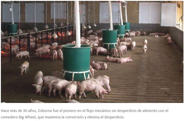 La alimentación de cerdos por flujo mecánico y sin desperdicio es la marca de Osborne
