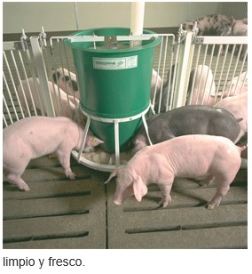 Alimentación por flujo mecánico funciona en forma distinta que en los comederos por flujo de gravedad. El diseño de flujo mecánico requiere la interacción de los cerdos con el comedero, no la gravedad, para determinar el flujo de alimento. El alimento fluye sólo cuando los cerdos están comiendo, estando siempre limpio y fresco.