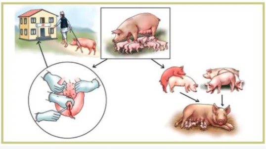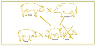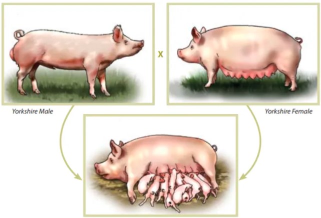 • Cruce entre estos cerdos macho hembra.