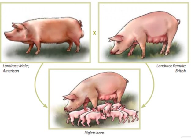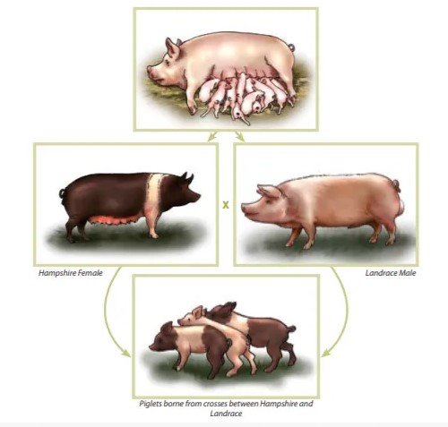 El apareamiento de dos animales de diferentes razas introduce en la progenie una combinación de genes que es diferente de la que existe en cualquiera de los padres o en la raza de cualquiera de sus padres. El cruce puede involucrar dos o más razas, dependiendo del resultado deseado. El único propósito del cruce de razas es aprovechar la mejora que se observa en el rendimiento de la progenie por encima del vigor híbrido de alguno de los padres o heterosis.