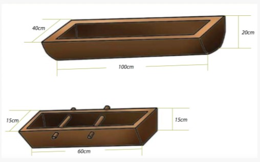 El comedero debe estar firmemente anclado al suelo para evitar que se vuelque y se desperdicie el pienso. El tamaño del comedero para diferentes edades y propósitos se muestra en la siguiente tabla.