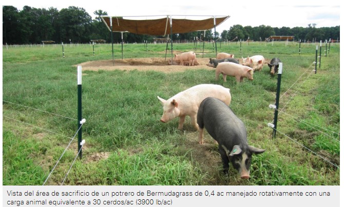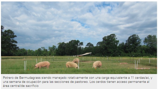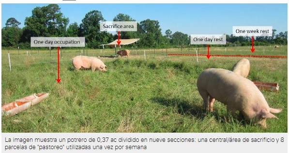 El sistema propuesto se ha implementado con éxito en la granja del Centro para el Sistema de Agricultura Ambiental (CEFS) ubicada en Goldsboro Carolina del Norte. Las cerdas en gestación y los cerdos en finalización se manejaron de forma rotativa con pasto bermuda y festuca alta, manteniendo más del 70 % de cobertura del suelo.