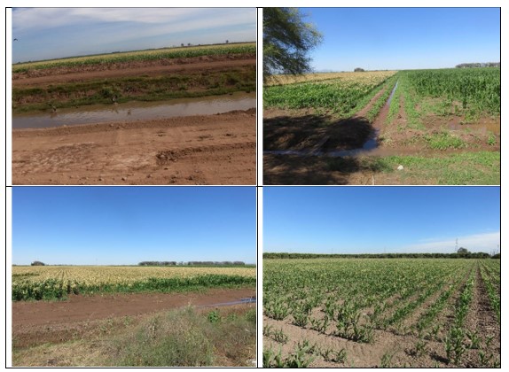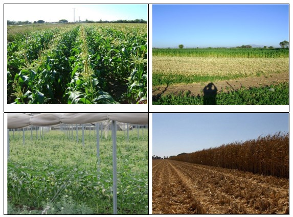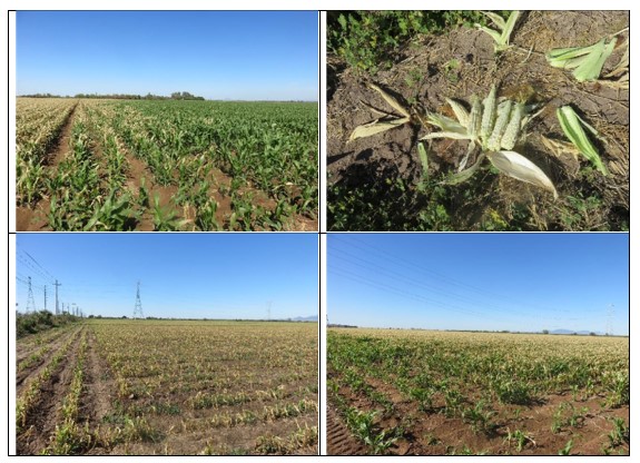 Cultivo de maíz dulce para exportación (arriba izquierda) Maíz para verde picado (arriba derecha). Cultivo de maíz en malla sombra (abajo izquierda) Maíz grano de alto rendimiento (abajo derecha)