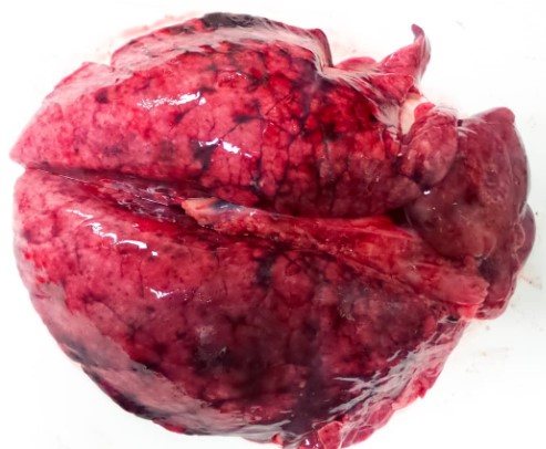 La infección por Salmonella entérica serovar Choleraesuis en cerdos puede provocar septicemia y neumonía intersticial, con pulmones pesados no colapsados y de textura gomosa, además de edemas y hemorragias.