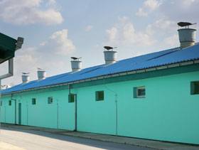 A su vez, están los túneles de viento: paneles refrigerantes que se ponen en un extremo del galpón, y en el otro extremo se ponen turbinas de un buen tamaño que pueden tener hasta uno o dos metros de diámetro, con cortinas laterales que son herméticas e imantadas por lo que siempre están cerradas.