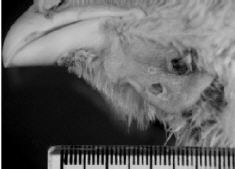 | Figure 20. Fowl pox lesions on the wattle of an adult broiler parent chicken. |