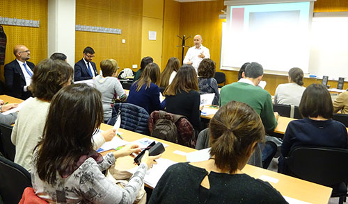 A su llegada, los casi 30 expertos pertenecientes a 20 empresas fueron recibidos por director de CReSA-IRTA, Joaquim Segalés, que tras darles la bienvenida les explicó las principales medidas del centro en bioseguridad, con instalaciones de biocontención de nivel 3 (NBS3).