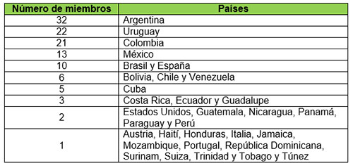 Tabla 1. Distribución de los miembros de DAD-Net LAC según país