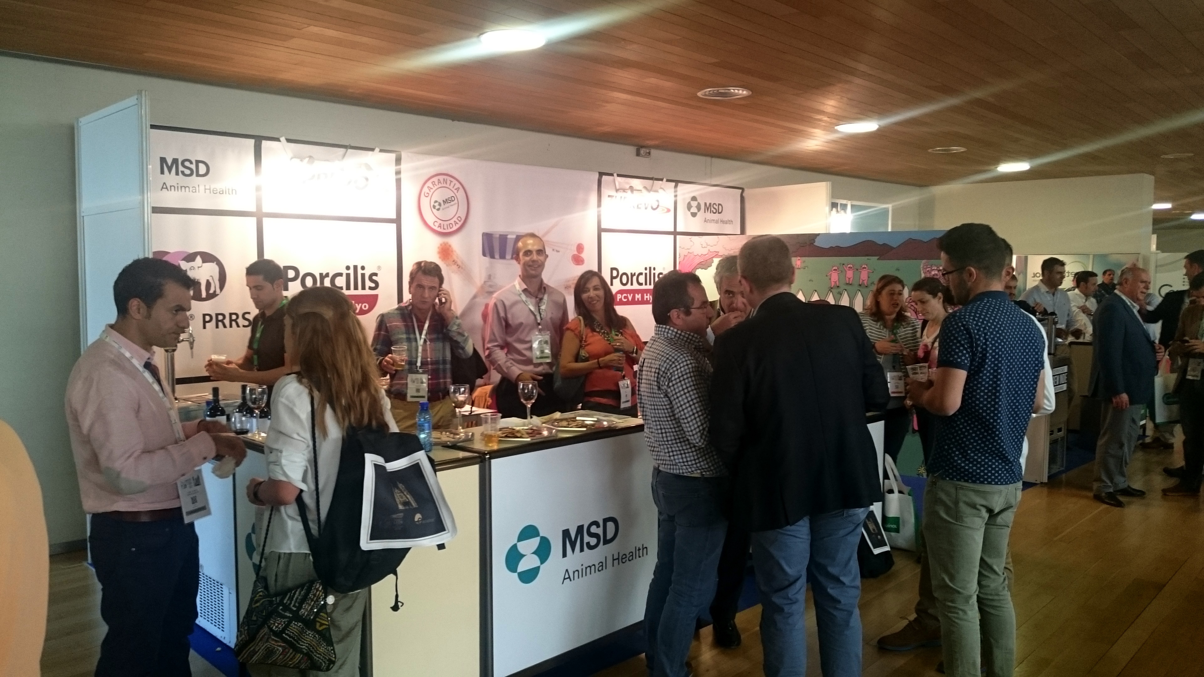Durante el evento, la compañía publicitó una parte de su amplio porfolio de vacunas y servicios, en donde destacan las gamas ResPig (Porcilis PCV M Hyo, Porcilis PCV y Porcilis PRRS, entre otros) y ReproPig o los productos IDAL. Todos los asistentes que se acercaron al stand de MSD Animal Health, uno de los patrocinadores del simposio, tuvieron la oportunidad de participar en una degustación de vino del Somontano procedente de la bodega aragonesa Sommos.
