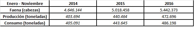 29 December 2016ARGENTINA - La faena de porcinos marcó un nuevo record histórico al totalizar 5.442.373 cabezas faenadas entre enero y noviembre, lo que marca un crecimiento del 8,45% en comparación con el mismo lapso del 2015, cuando se habían faenado 5.018.458 cabezas.