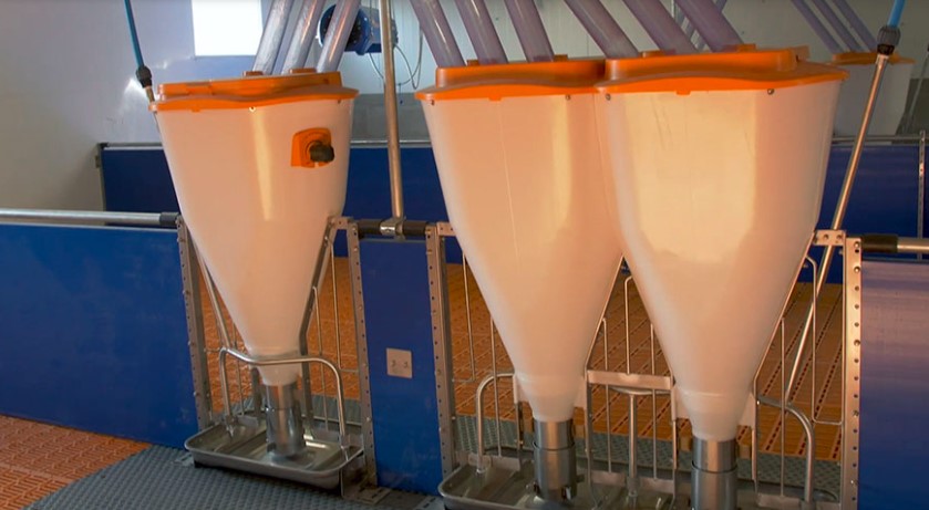 CallBackpro | El sistema de alimentación para el manejo en grupo de cerdas preñadas reúne lo mejor de dos mundos: Los animales viven en grupo, lo que satisface las necesidades de los animales, pero comen protegidos de cerdas agresivas en la jaula de autobloqueo, donde entran y salen de manera autónoma. En el sistema de alimentación controlada por ordenador llevan un transpondedor de marca en la oreja, de manera que se puede dosificar la alimentación según la necesidad.