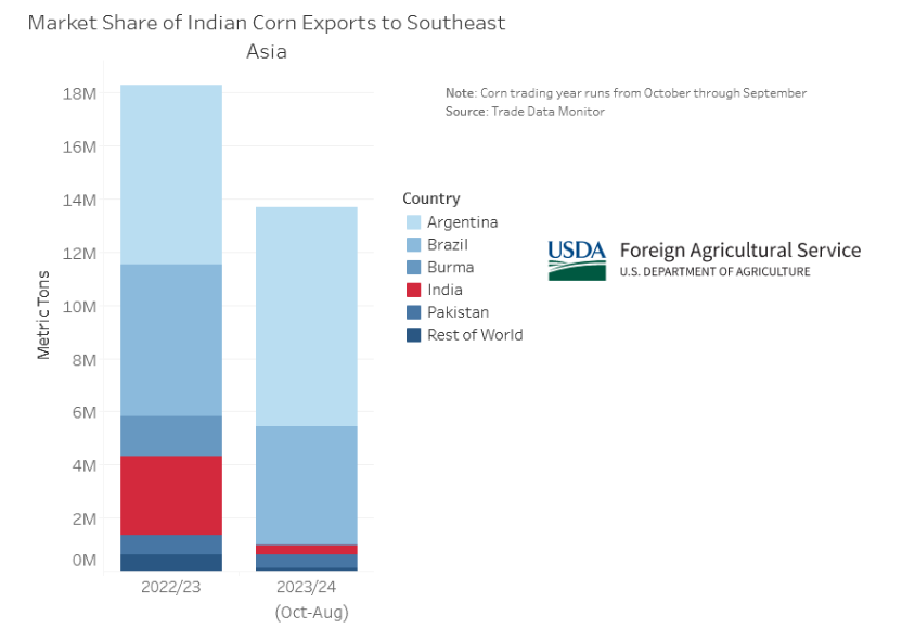 Países como Bangladesh y Nepal, que el año anterior se abastecieron mayormente de maíz indio, ahora están intentando incentivar la producción nacional del cereal, mientras que otros, como Vietnam, están aumentando las compras que hacen a Brasil y Argentina.