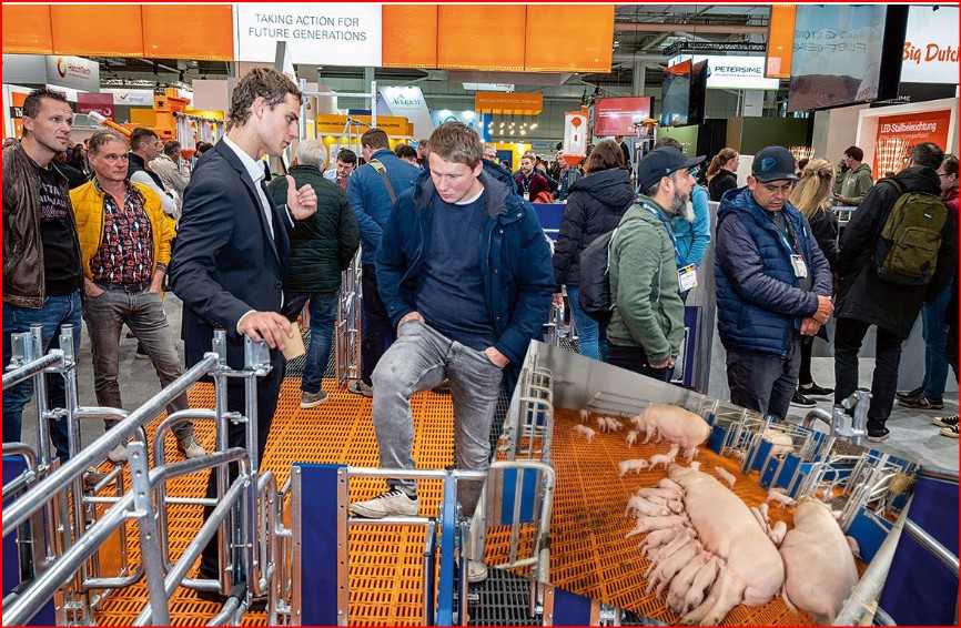 En cuanto al equipamiento para naves porcinas, en el stand de la feria se notó el cambio en el manejo de cerdas: Muchos ganaderos querían saber más sobre Agilo, un sistema de alojamiento para el manejo en grupo de cerdas con lechones.
