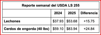 El 30 de abril, el promedio semanal de más de 700,000 cabezas fue 4.5 libras más este año que el año pasado. La semana del 7 de junio de este año, el peso fue de -1.7 libras interanual. Una variación de 6.3 libras en poco más de un mes. Los empacadores y productores están reduciendo los pesos a medida que suben los precios del cerdo. El 23 de abril, el precio nacional del cerdo magro fue de $85.02 US dls. El viernes pasado, de $104.95 US dls. Un aumento de $40 US dls. por cabeza.