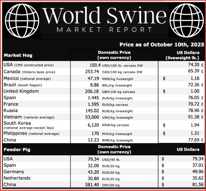 28 October 2025VIETNAM - Los precios en Vietnam han estado cayendo debido, en parte, a los brotes de Peste Porcina Africana, lo que ha obligado a más productores a vender a precios más bajos para evitar sacrificios, poniendo más carne de cerdo en el mercado. Desde el último informe sobre Vietnam, el precio promedio nacional en USD por libra en peso vivo ha bajado 14¢, lo que está resultando en pérdidas por cerdo.