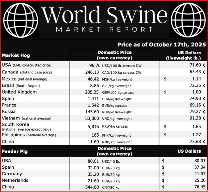 A principios de julio, el precio del cerdo en pie en España era de 1.82 euros/kg (96¢ USD/lb.), mientras que hoy es de 1.411 euros/kg (75¢ USD/lb.). Eso representa una caída del 22% en poco más de 3 meses – dinero real. Este cambio en el precio está ejerciendo presión sobre la industria con márgenes más ajustados en comparación con principios de año y algunos productores perdiendo dinero.