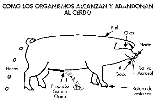 Los agentes infecciosos entran y abandonan al cerdo como se muestra en la figura 2-16.