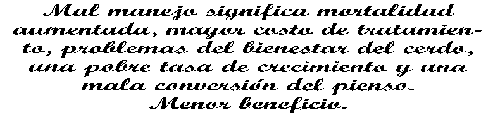 Después del destete, los lechones están expuestos a una serie de patógenos que en diferentes concentraciones son eliminados por los destetados de mayor edad y los cerdos en crecimiento. Esto ocurre al mismo tiempo que los animales están sufriendo un estrés extremo por el destete, cuando su inmunidad adquirida de la madre está disminuyendo y su propia inmunidad activa no ha tenido tiempo para un desarrollo completo. A medida que se hacen mayores, el peso total del grupo y la densidad de población aumentan y crece la necesidad de ventilación máxima. Esta es a menudo inadecuada y las infecciones enzoóticas, particularmente las infecciones respiratorias, comienzan a producir enfermedad clínica.