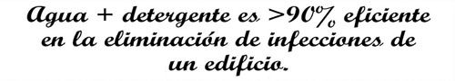 con agua caliente. - El uso de detergentes para ayudar en la eliminación final del material orgánico. Sólo después de completar estas dos debe aplicarse el desinfectante.
