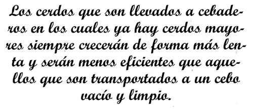 Los efectos de esto están ilustrados por un caso de escaso crecimiento en cerdos de cebo. Estuvieron involucradas dos instalaciones, de las cuales ninguna había sido vaciada y lavada en los últimos 2,5 años. Como un experimento, un grupo de cerdos fue dividido en dos a la entrada de los cebos y pesados al comienzo de la ceba y en el momento del sacrificio. Uno de los cebos fue dividido en dos secciones y usado en base a un sistema todo dentro/todo fuera. Se lavó por completo previo a la entrada de cada lote de cerdos y el otro cebo se usó como control sin realizar cambios. Se compararon las curvas de crecimiento de ambos grupos y en el momento de sacrificio a los 90 kg hubo alrededor de 9 días con la ventaja obvia del cebo que fue limpiado. Es interesante en este caso que sólo se usó agua y detergente sin desinfectantes. El procedimiento todo dentro/todo fuera también había contribuido al rendimiento.