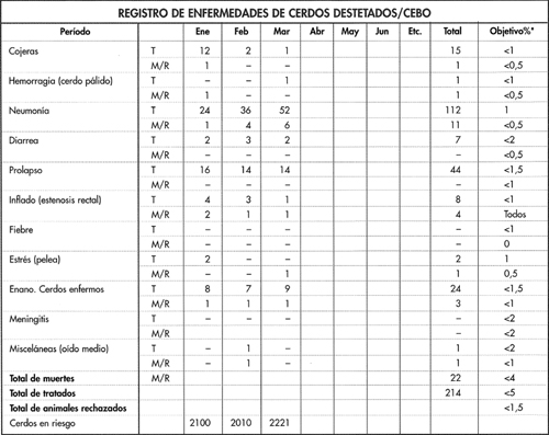 La producción es monitorizada desde registros individuales de la cerda, cerdos lactantes, destetados o crecimiento-cebo y en ~ada uno de éstos se registra enfermedad, tratamiento y niveles de mortalidad.