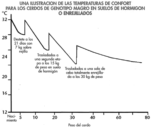 • Cerdos mantenidos por debajo de sus temperaturas