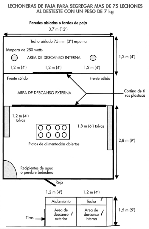 Sin embargo, cada edificio debe ser separado en secciones, cada una para mantener el grupo de cerdos de 1 semana y así se establece una operación de manejo todo dentro/todo fuera. El diseño y disposición