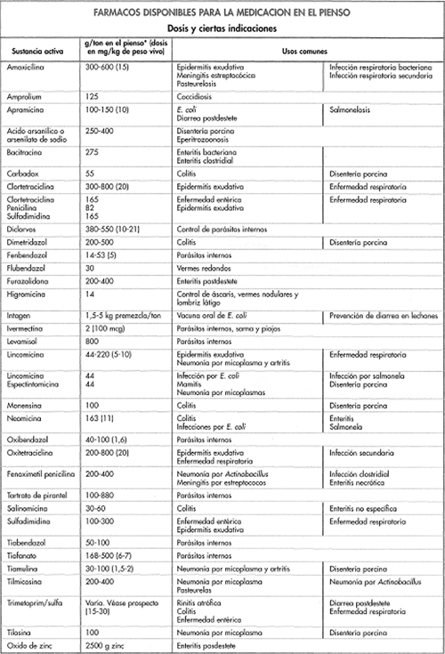 800 g/ton de OTC o CTC 220 g/ton de lincomicina 100 g/ton de tiamulina 200-400 g/ton Tilmicosina |