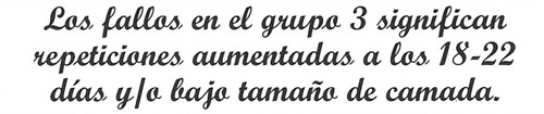 Repetición de celos en un ciclo normal de 18-22 díasCausas posibles y factores correctivos para las pérdidas del grupo 3 y algunas del grupo 4