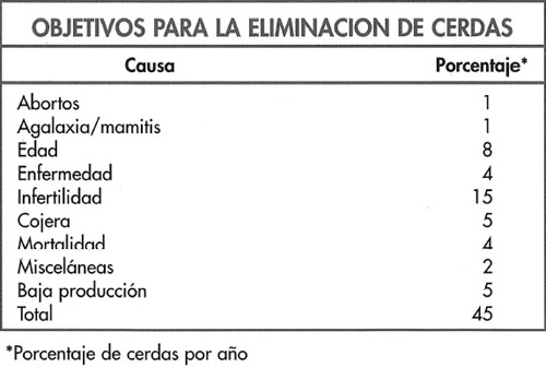En explotaciones intensivas, el nivel de hembras desechadas por año debe estar entre 38-45% y en las explotaciones en extensivo generalmente llega a un 50%.