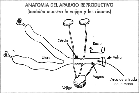 la vagina y hacia el exterior.