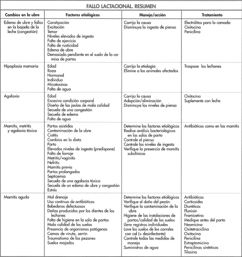 Describe la falta de leche en un animal que por lo demás está sano. Es poco frecuente como afección primaria siendo más bien la secuela de un edema de ubre extenso y de mamitis. También se ve en las cerdas viejas en las que la producción de hormonas está disminuida. Sin embargo, la causa más importante es la falta de agua. MAMITIS - INFLAMACION DE LAS GLANDULAS MAMARIAS