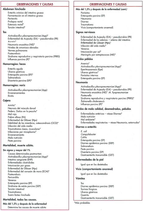 Es una afección común en el cerdo en crecimiento y cuando aparecen problemas es necesario realizar exámenes postmortem y bacteriológicos para identificar a los organismos o enfermedades responsables. Las posibles causas son: (*comunes)
