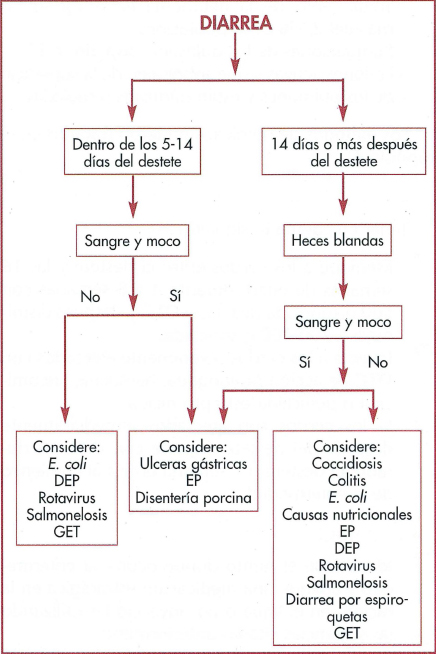 A las 3 a 6 semanas postdestete se desarrolla una diarrea leve a moderada que persiste unos pocos días con deshidratación y disminución del crecimiento. La mayoría de los casos se resuelven en 7 a 1 O días, pero en algunos cerdos se desarrolla una diarrea crónica. La enfermedad puede ser difícil de diferenciar de una infección bacteriana, sobre todo de una colitis.