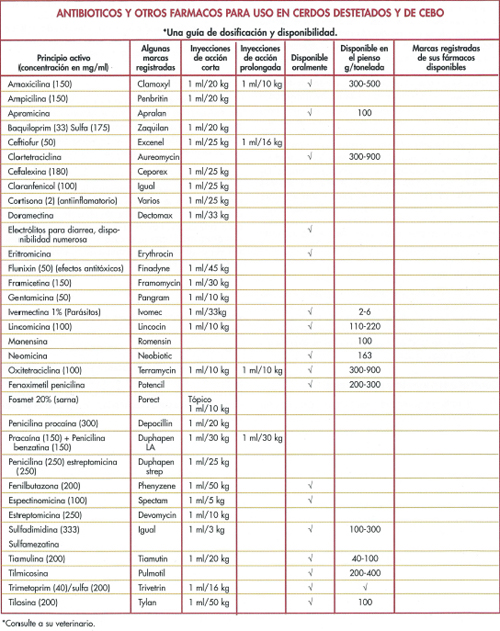 Medicamentos y otras sustancias utilizadas en los cerdos destetados y de cebo