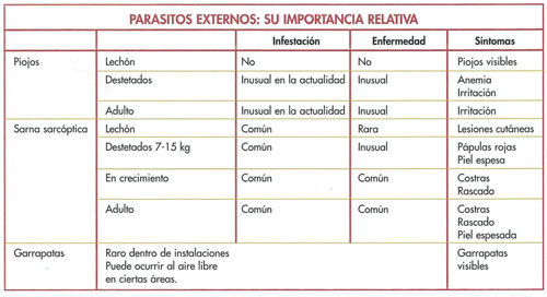 Normalmente no se encuentran en cerdos mantenidos en instalaciones cerradas. Las especies e incidencia difieren de región a región, de tal forma que el conocimiento local es útil. Si se vinculan a los cerdos, es invariablemente a aquéllos mantenidos al aire libre. Normalmente no son de importancia por sí mismas, pero pueden transmitir varias enfermeda-
